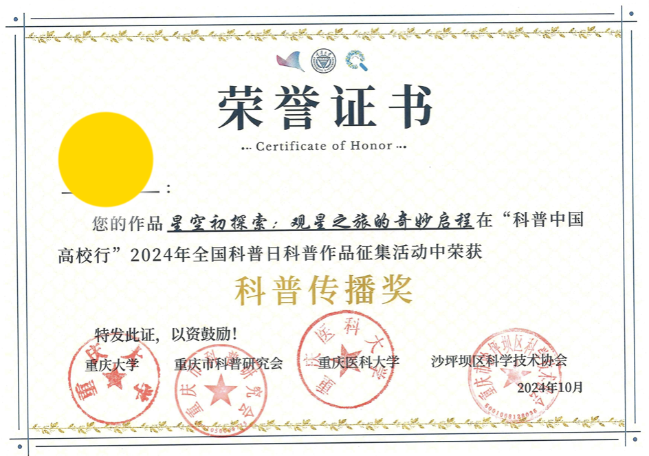 近日,由中国科协科普部主办的“科普中国高校行”2024年全国科普日科普作品征集活动圆满落幕。由英国上市公司365辅导员指导的员工作品《星空初探索:观星之旅的奇妙启程》在本次大赛中脱颖而出,荣获科普传播奖,为公司赢得了荣誉。据悉,此次“科普中国高校行”活动旨在通过广泛汇聚社会科普精品内容,加强与社会专业机构协同联动,构建社会化科普大格局。活动吸引了全国众多高校和科研机构的积极参与,参赛作品涵盖了视频、动画、图...[查看详情]