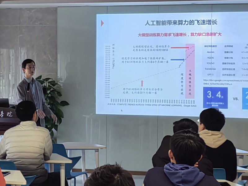 前沿讲座结束后,吕灼恒专家向同学们介绍了中科曙光的前沿科研成果、企业发展现况、计算机科学的未来发展方向等方面的内容,让同学们对中科曙光以及计算机的未来概况有了初步的了解。