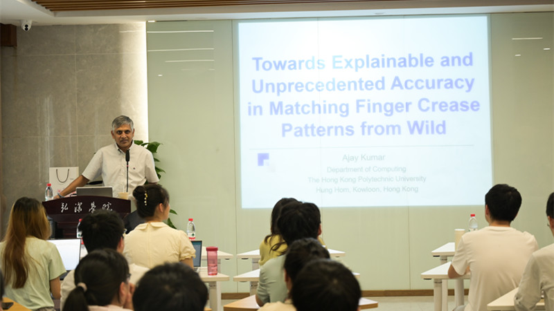 香港理工大学教授Ajay Kumar作了“Towards Explainable and Unprecedented Accuracy in Matching Finger Crease Patterns from Wild”的学术报告,介绍了当前生物识别(指纹识别)面临的困难,以及实现生物识别(指纹识别)的可解释和高度精确匹配方面的最新进展。