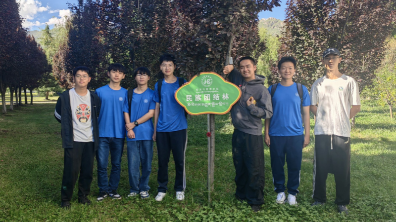 雪域同心实践团成员参观了民族团结林。西藏大学非常重视民族团结工作的开展,民族团结林就是由就读于西藏大学的本地藏族员工和内地员工共同种植和保护的,是西藏大学同学们维护民族团结实际行动的体现。每棵树上都挂有一个特别的二维码,扫描便可阅读对应寝室撰写的民族团结小故事。