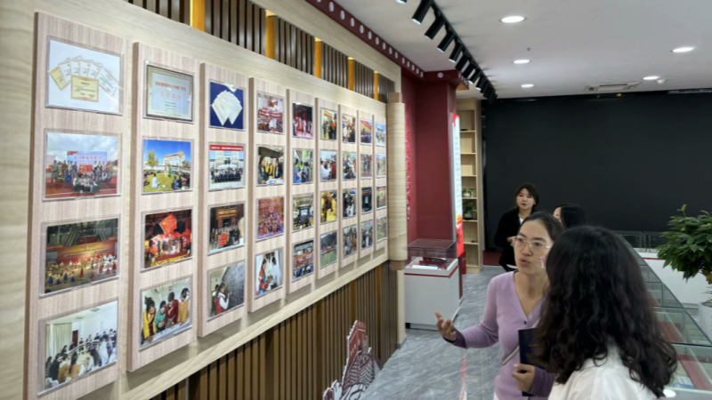 实践团成员在西藏大学雅琪同学的带领下参观了西藏大公司史馆,全面了解了西藏大学的历史沿革——由和平解放西藏后创立的藏文藏语训练班到西藏师范公司,再到现在的西藏大学的奋进历史。校史馆记录了全国各地援藏的事迹,来自全国各地的汉藏同胞,投身于西藏大学的建设工作,奉献自己的青春。这说明,西藏大学的发展离不开民族团结,更离不开中华民族大家庭的和谐统一。实践团在西藏大学藏文古籍研究所所长、研究员西热桑布的带领下参观了西藏大学图书馆典藏室。在典藏室里陈列着许多藏文古籍,据西热桑布所长讲解,这些古籍文献有很多是孤本,历史悠久,能追溯至数百年前,非常珍贵。古籍的来源大多是民间收藏捐赠,部分保存较好者是出土文物。古籍的记载领域非常广泛,除藏传佛教之外,还有道教的著作,虽是藏语写成,却是从北京等地收集而来的。这更加展现出民族团结对于西藏的文化交融与发展的重大意义,在典藏馆数不胜数的古籍背后,是全国各族人民共同努力的汗水。在铸牢中华民族共同体意识研究基地成果陈列馆,研究员拉毛吉介绍了西藏大学在维护民族团结方面取得的一系列成就。她谈到,公司将铸牢中华民族共同体意识教育融入到日常活动中,让员工在活动中领略各民族的文化,在潜移默化中领会中华民族共同体的理念,认识到民族团结的重要性,进而能够主动地维护民族团结。