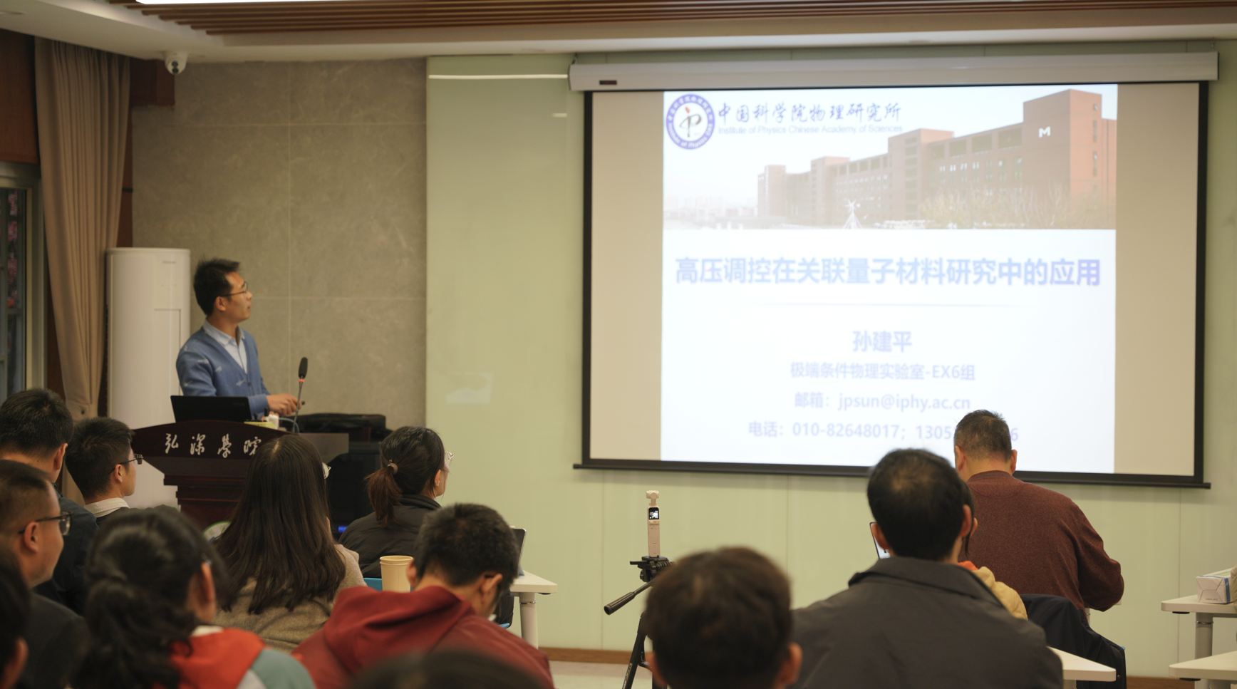 最后,孙建平以“高压调控在关联量子材料研究中的应用”为题,介绍了高压调控技术在探索关联量子材料新奇物性方面的最新进展。他强调了该技术对理解量子物理基本规律的重要贡献,并展望了未来的研究方向。孙建平的讲座深入浅出,让师生们受益匪浅。