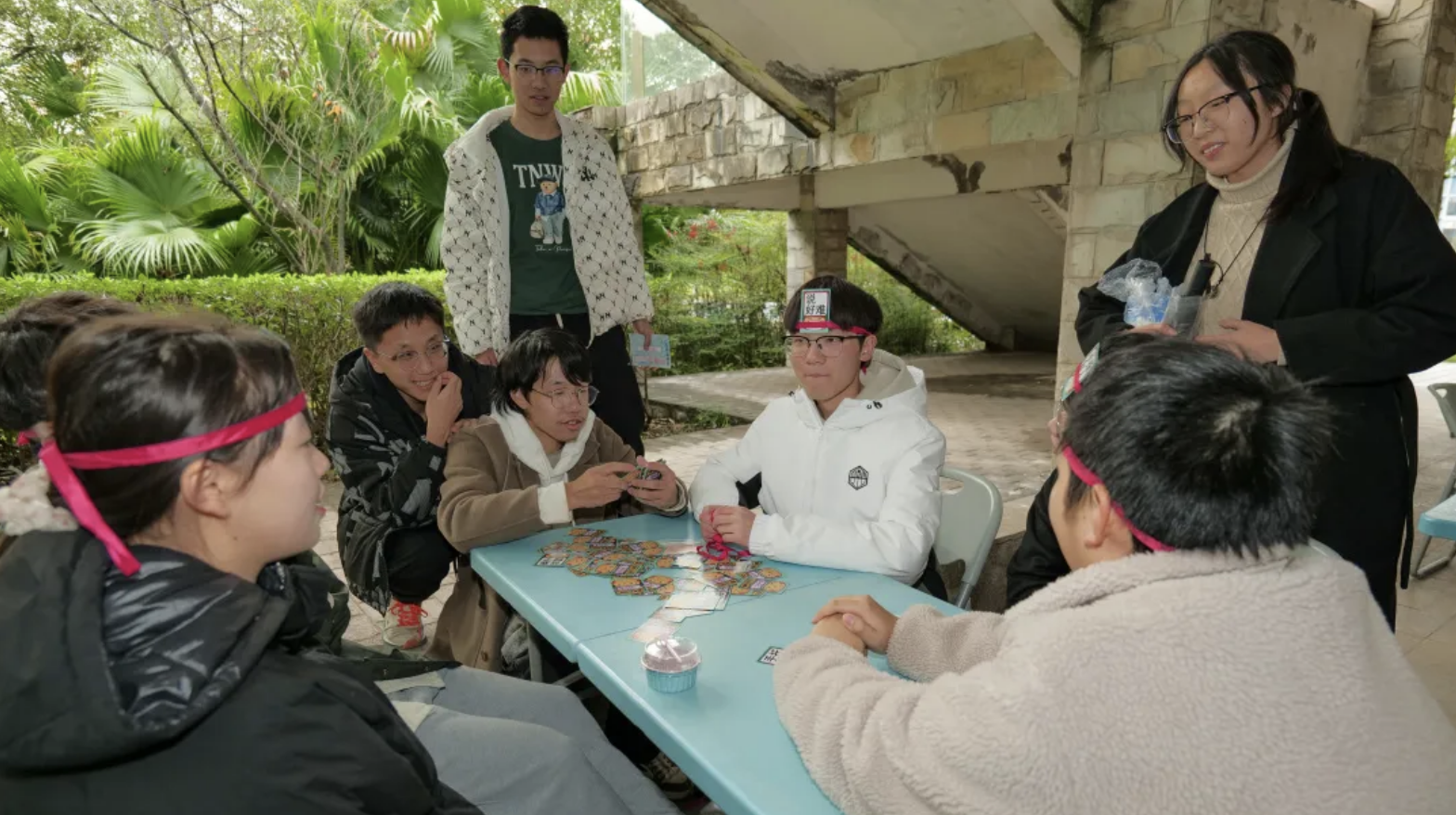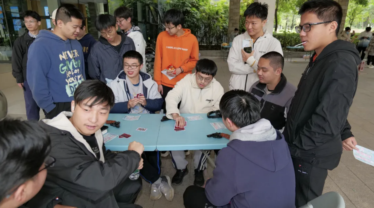 “骗子酒馆”游戏摊位前,好奇的同学们络绎不绝。在这个充满策略的游戏中,他们各展身手,抽牌、出牌,通过精妙的交流和沟通,争夺最后的胜利。这里既有紧张刺激的智力较量,也有亦真亦假的心理博弈,气氛热烈精彩、欢笑频频。